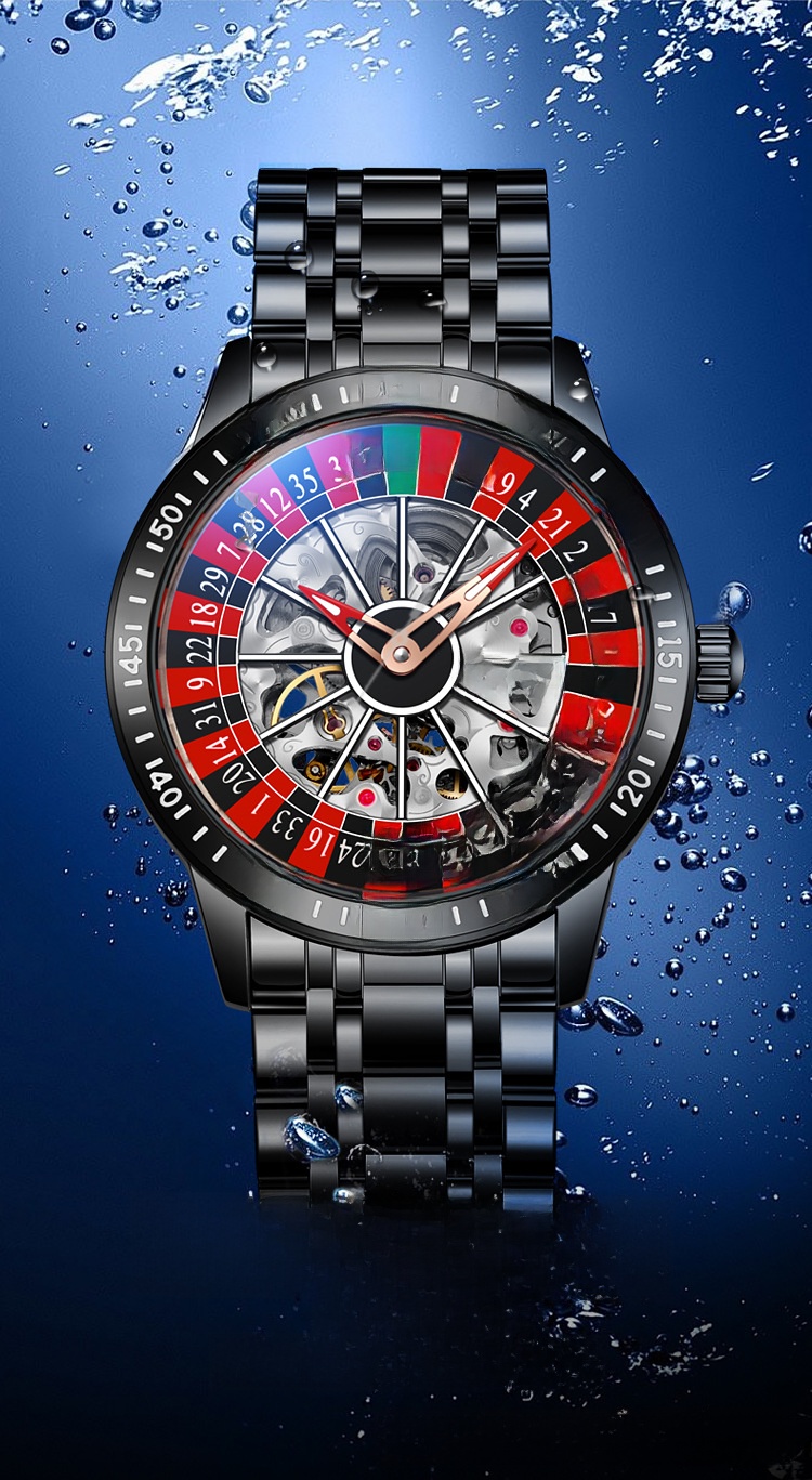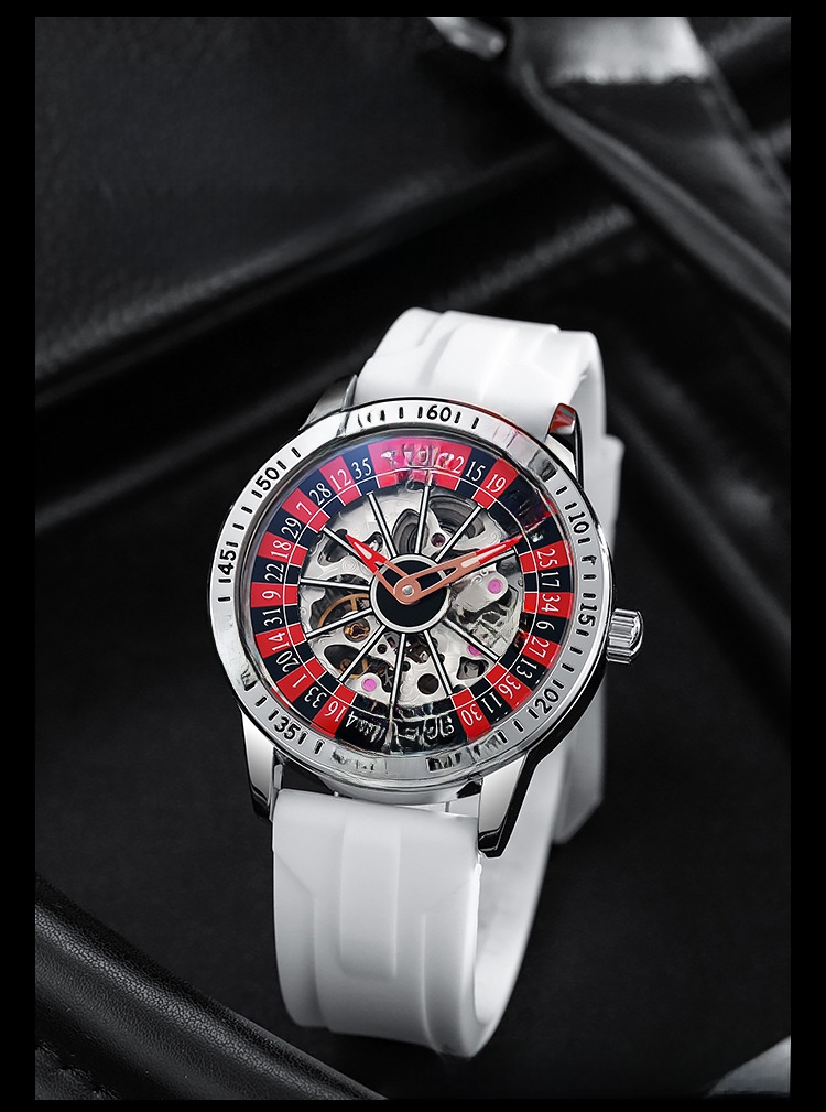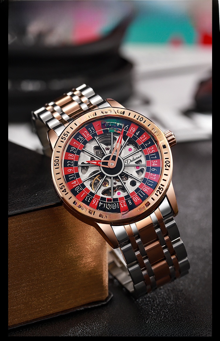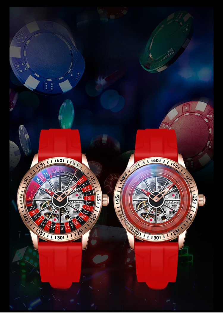 Roulette Dial: Unique gambling-themed design with a stylish roulette pattern on the dial.