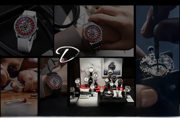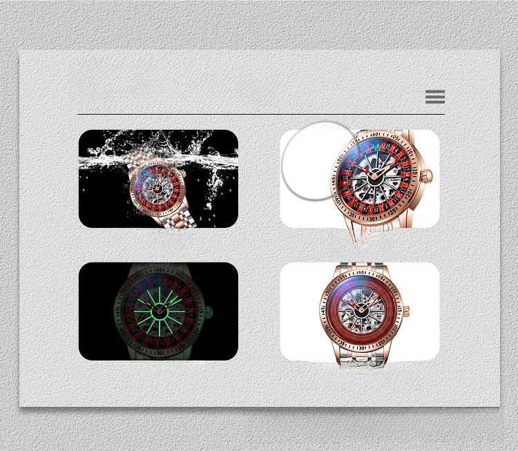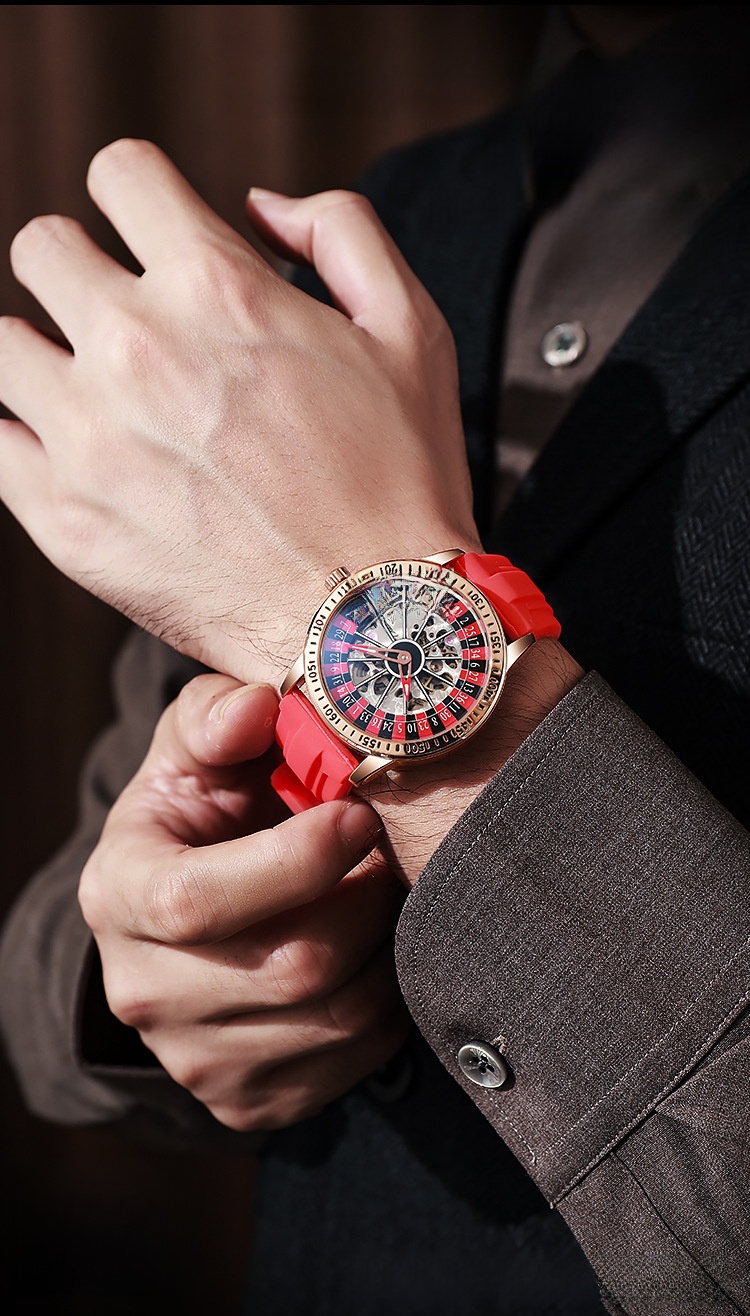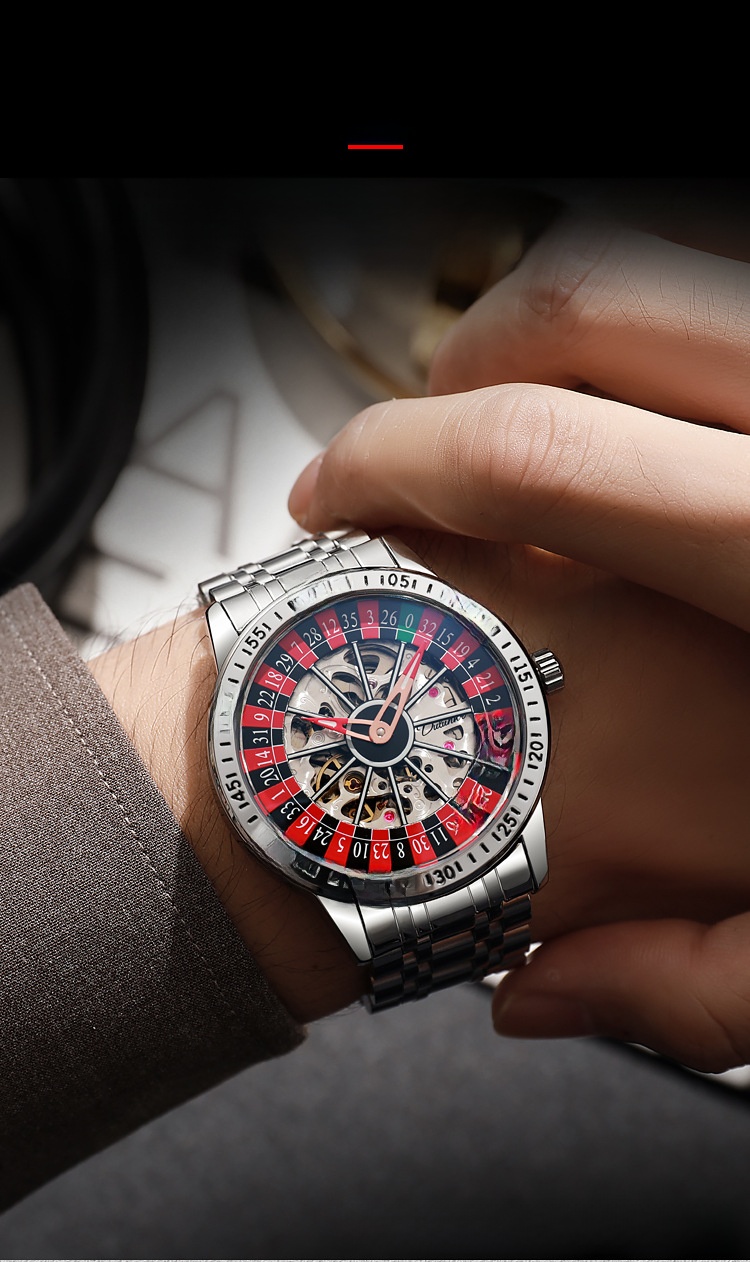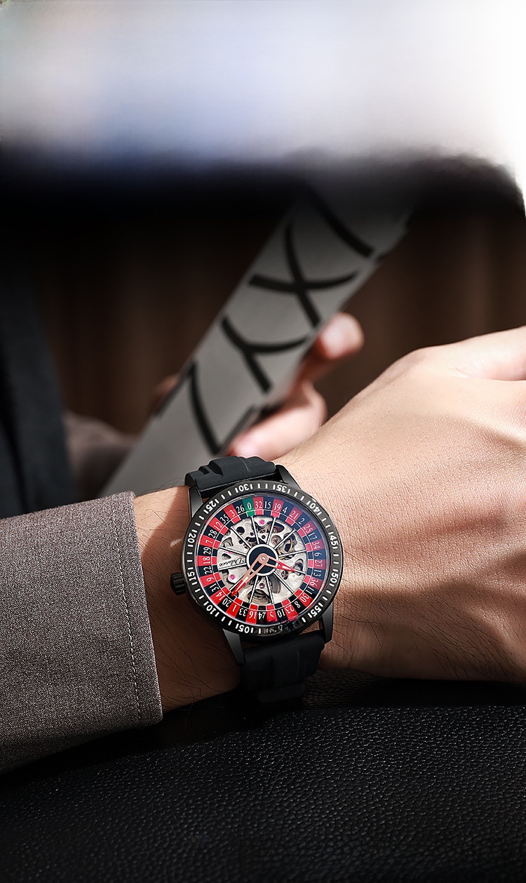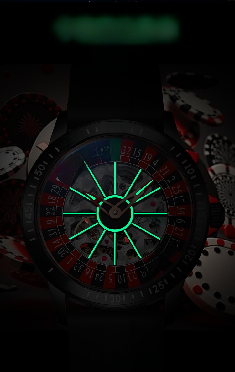 Roulette Dial: Unique gambling-themed design with a stylish roulette pattern on the dial.